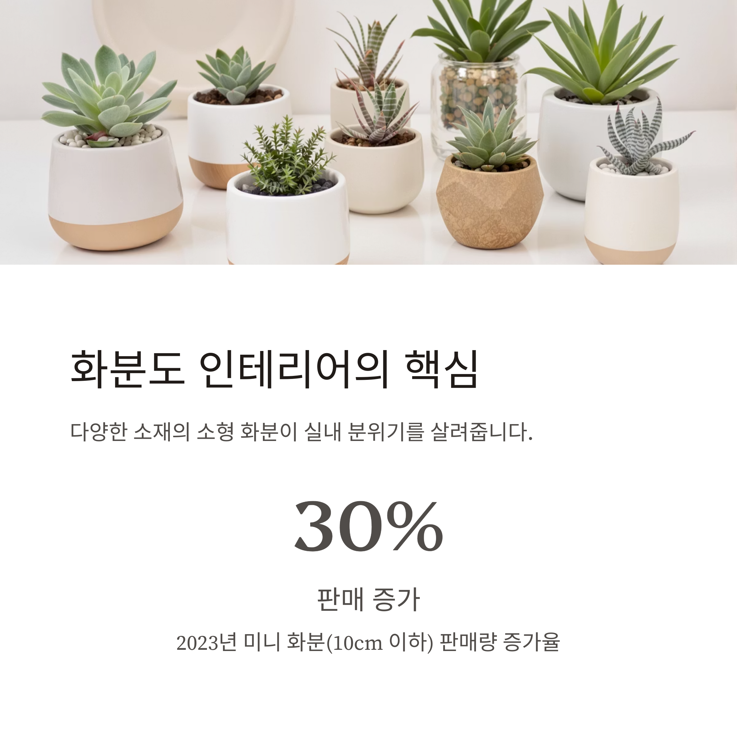 | 미니 화분 판매 증가율 | 2023년 기준 전년 대비 30% 증가 |