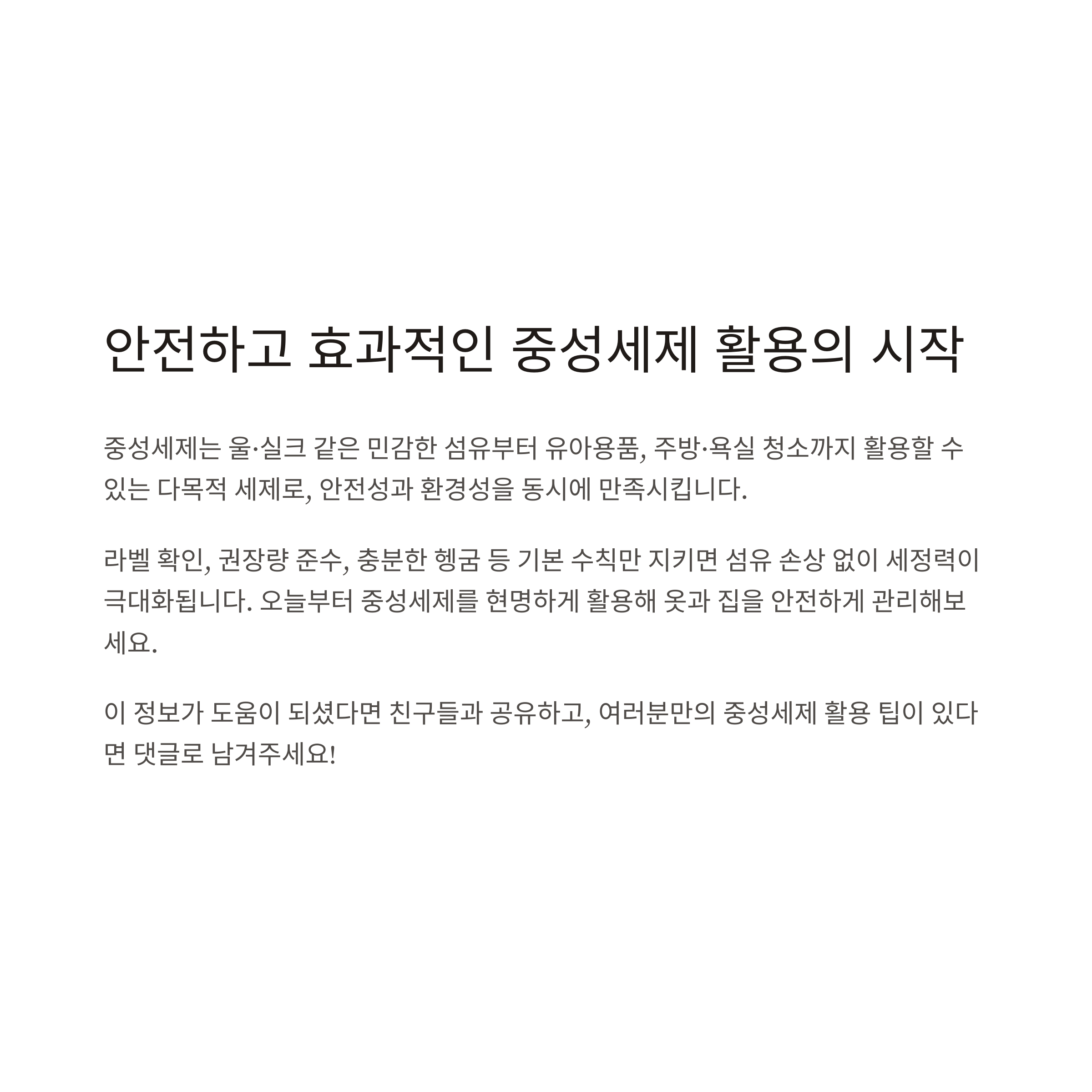 오늘부터 중성세제를 현명하게 활용해 옷과 집을 안전하게 관리해 보세요.