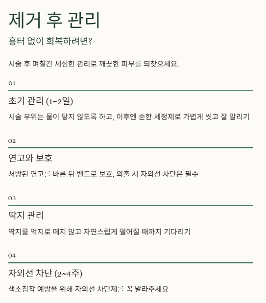 시술을 받은 뒤에는 며칠간 세심한 관리가 필요합니다.