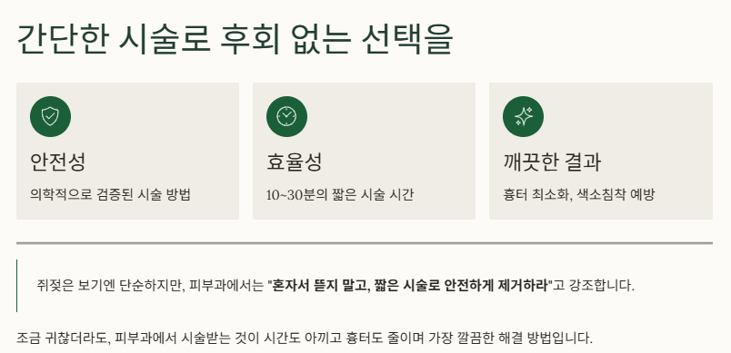 시간도 아끼고 흉터도 줄이며 가장 깔끔한 해결 방법이 될 수 있습니다.