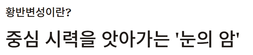 50세 이상에서 발병률이 급격히 높아지며, 노인성 실명 원인 1위로 꼽히는 무서운 질환이죠.