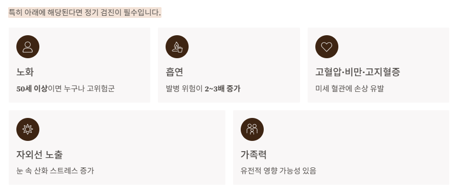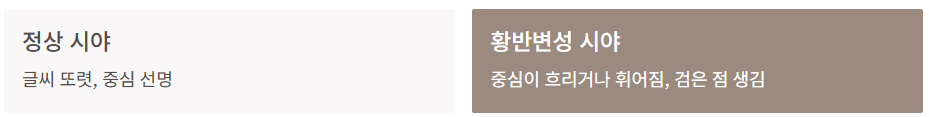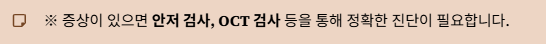 ※ 증상이 있으면 안저 검사, OCT 검사 등을 통해 정확한 진단이 필요합니다.