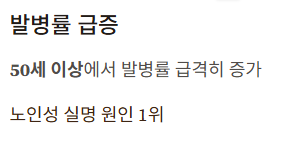 - 노화: 50세 이상이면 누구나 고위험군