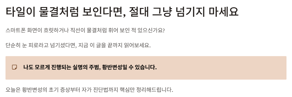 초기에는 노안이나 피로로 착각하기 쉽기 때문에 주의가 필요해요.