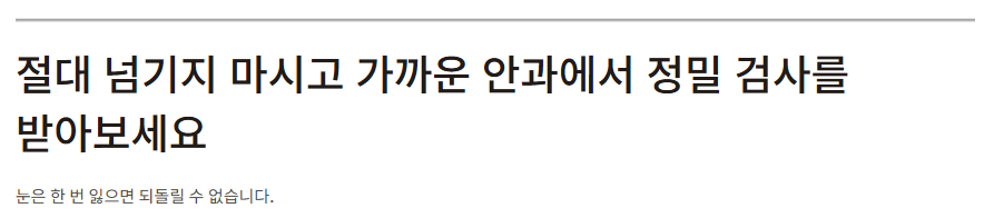 절대 넘기지 마시고 가까운 안과에서 정밀 검사를 받아보세요.