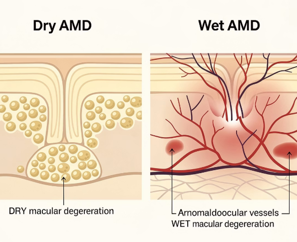 | 특징 | 노폐물 축적 | 비정상 혈관 자람, 출혈·부종 |