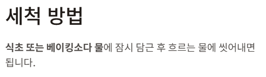식초 또는 베이킹소다 물에 잠시 담근 후 흐르는 물에 씻어내면 됩니다.