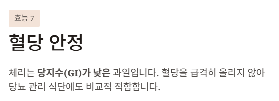 체리는 당지수(GI)가 낮은 과일입니다.