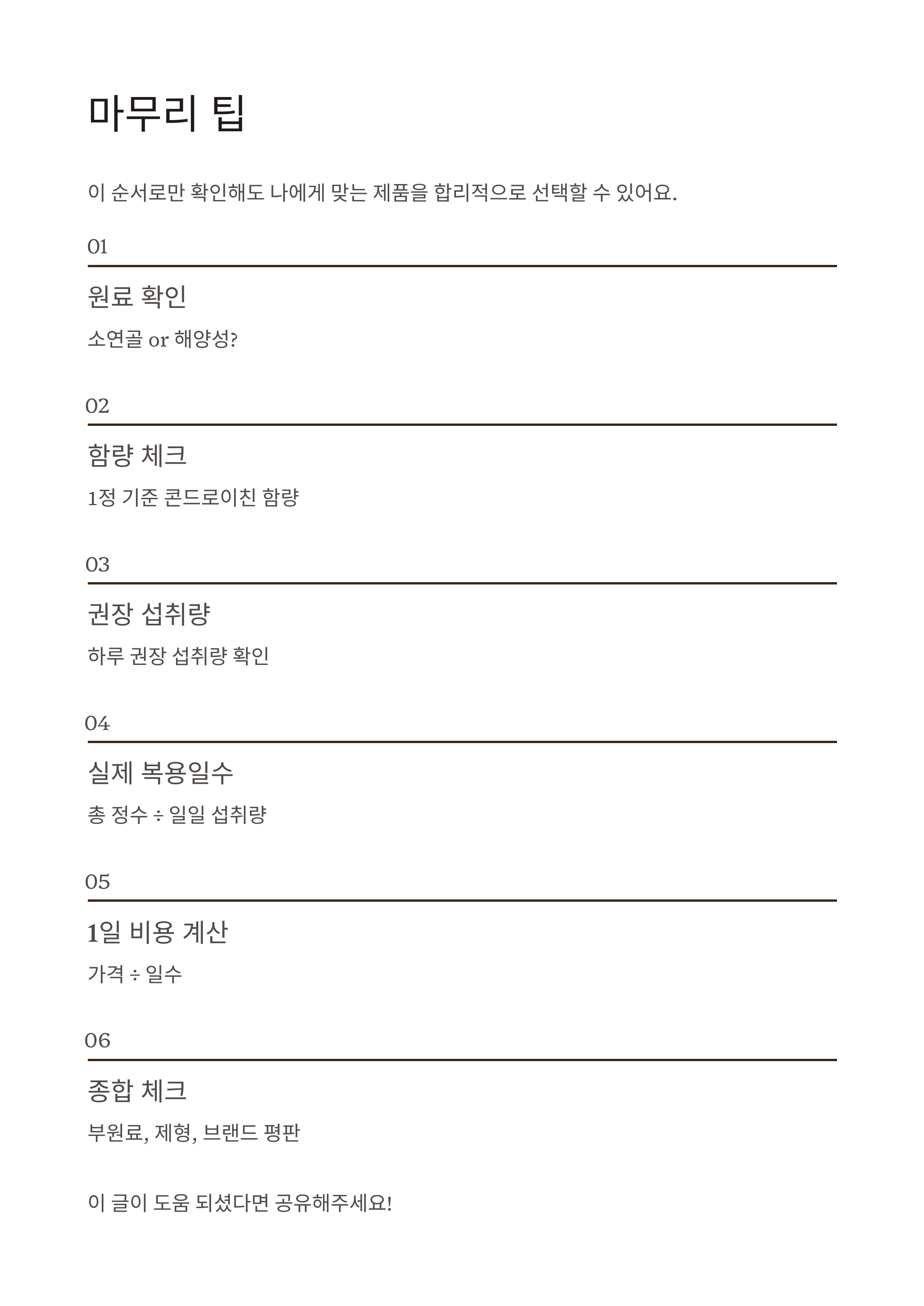 이 순서로만 확인해도, 나에게 맞는 콘드로이친 제품을 훨씬 더 합리적으로 선택하실 수 있을 거예요.