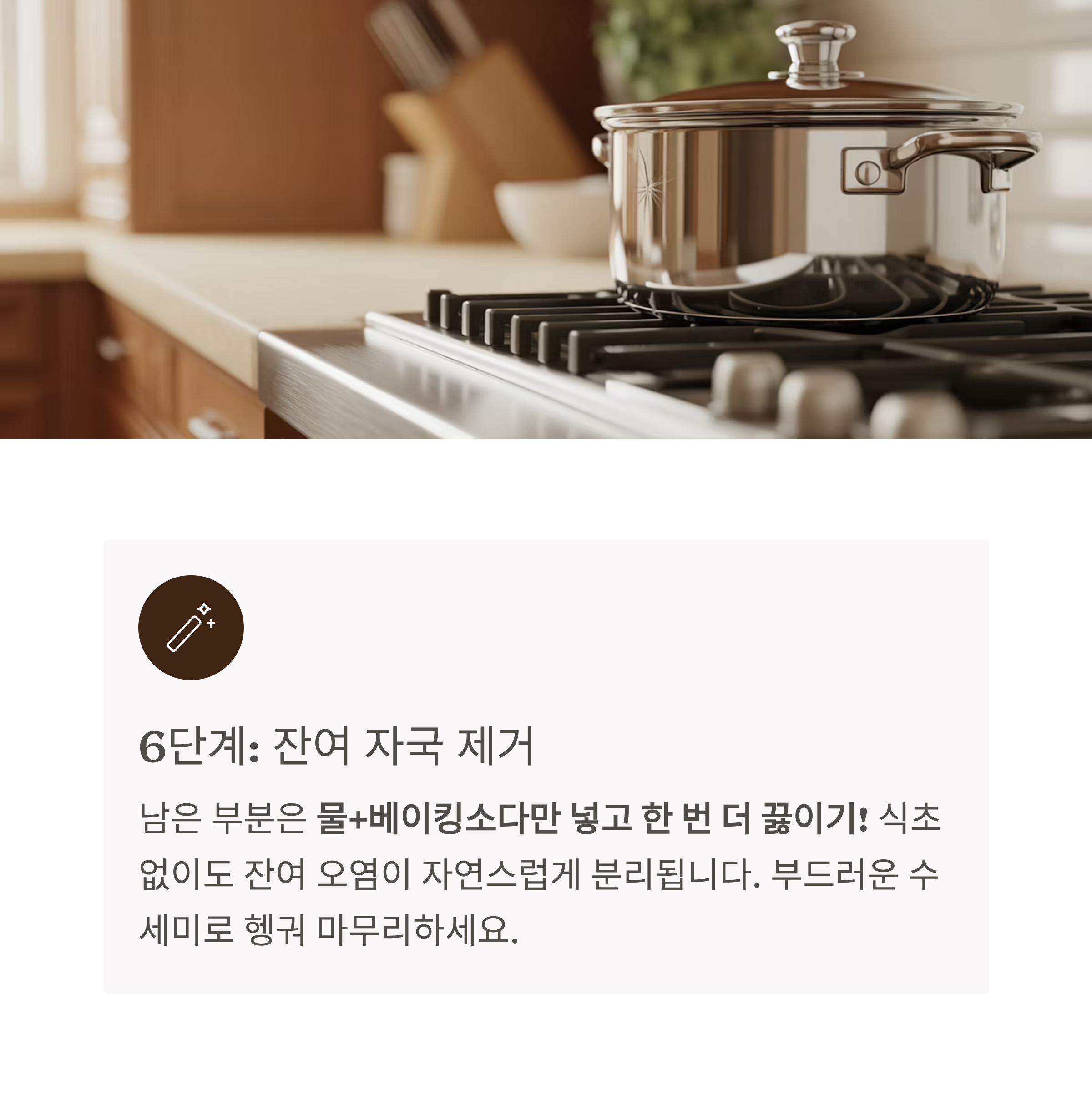 - 절대 끓이자마자 문지르지 않기: 자국이 오히려 더 눌러붙습니다.