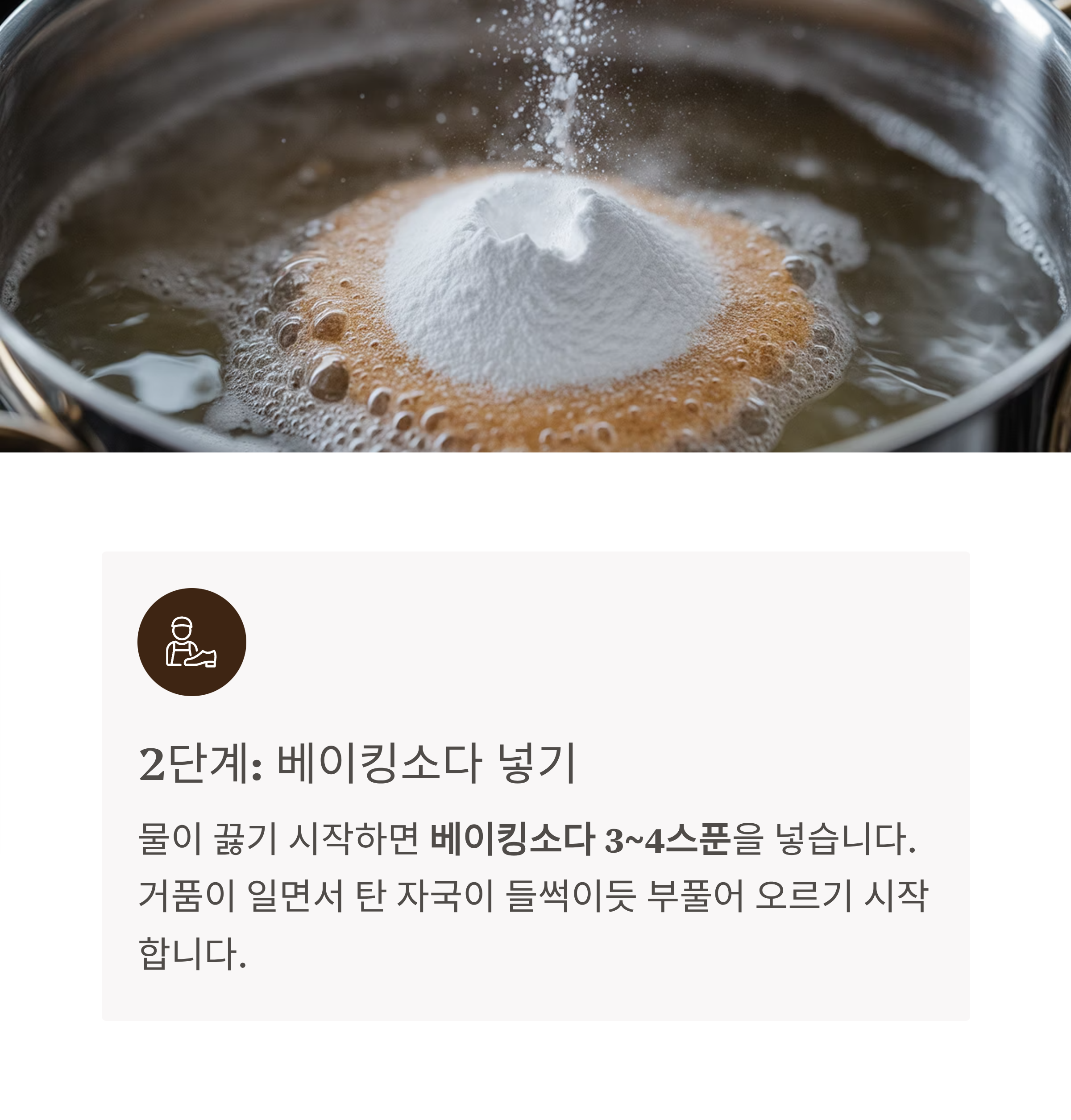 물이 끓기 시작하면 베이킹소다 3~4스푼을 넣습니다.