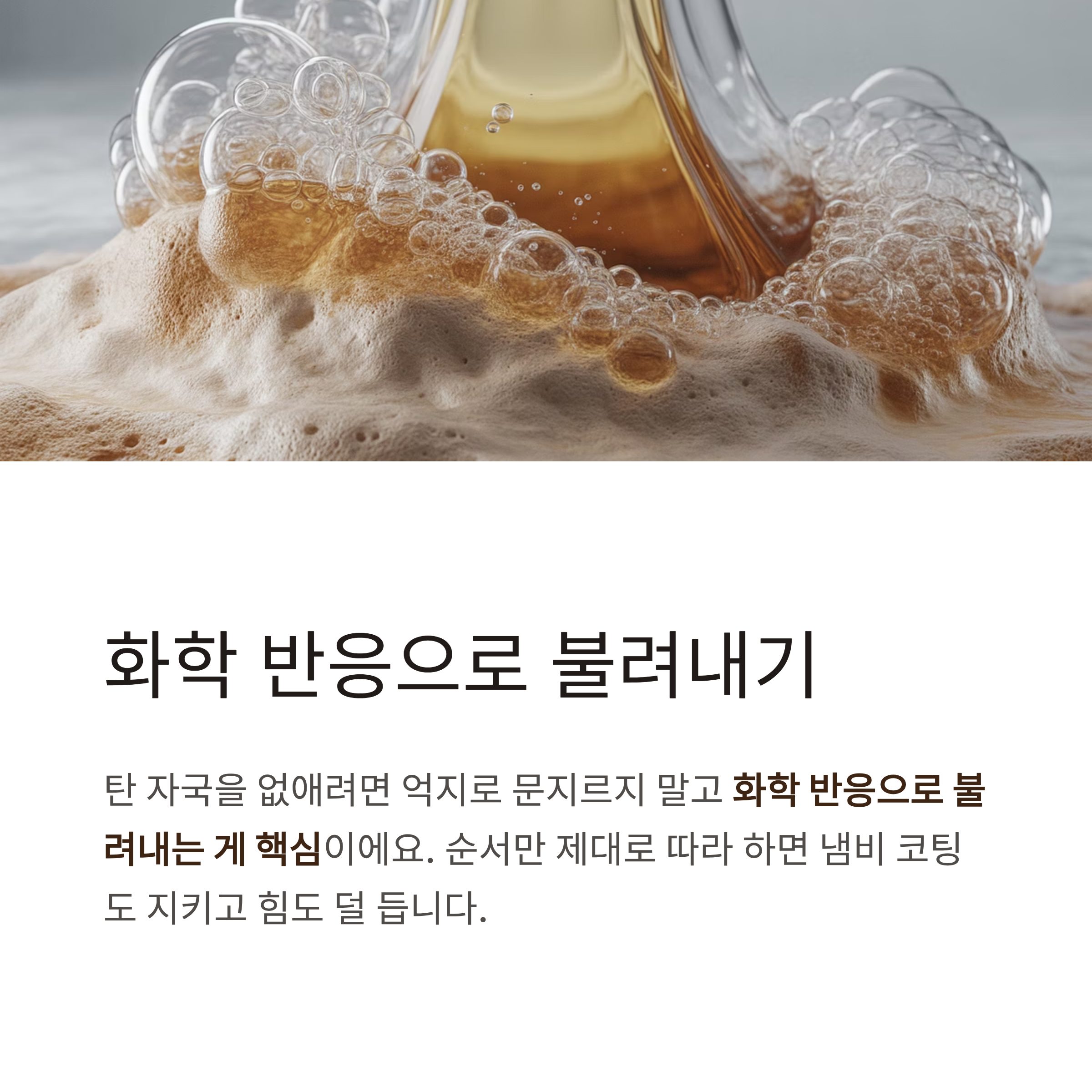 탄 자국을 없애려면 억지로 문지르지 말고 화학 반응으로 불려내는 게 핵심이에요.