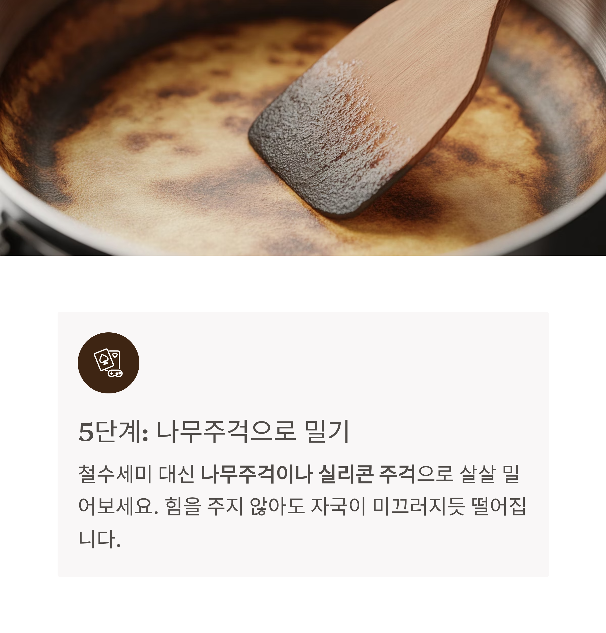 철수세미 대신 나무주걱이나 실리콘 주걱으로 살살 밀어보세요.
