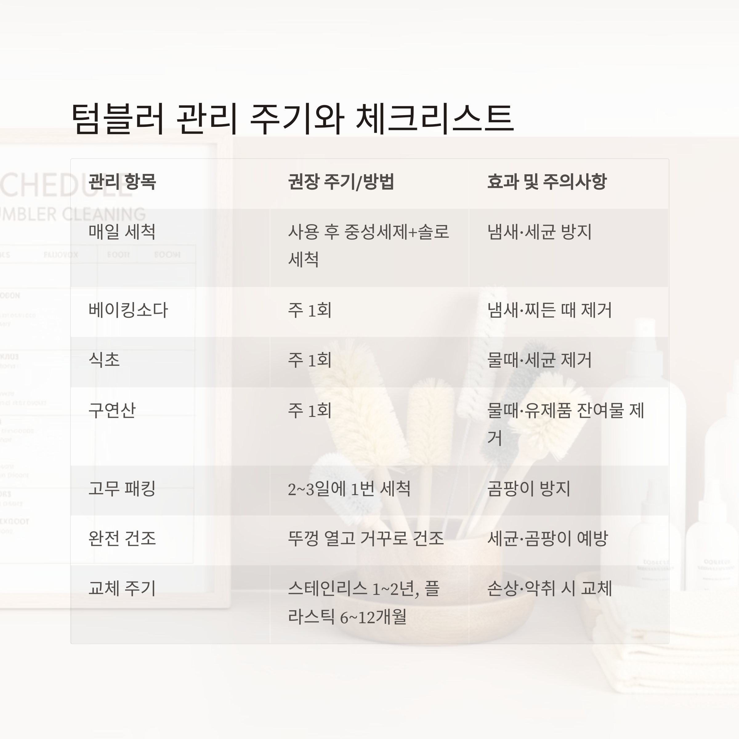 환경 보호와 건강을 위해 텀블러를 사용하는 분들이 많지만, 매일 사용하는 만큼 위생 관리가 제대로 되지 않으면 냄새와 세균, 찌든 때가 쌓이기 쉽습니다. 특히 입구가 좁고 깊은 구조 때문에 대충 씻고 넘어가기 쉽지만, 올바른 세척법을 꾸준히 지키면 오래도록 깨끗하게 사용할 수 있습니다. 이번 글에서는 최신 데이터와 전문가 추천을 바탕으로 텀블러 얼룩·냄새 제거 3대 세척법과 관리법을 소개합니다.