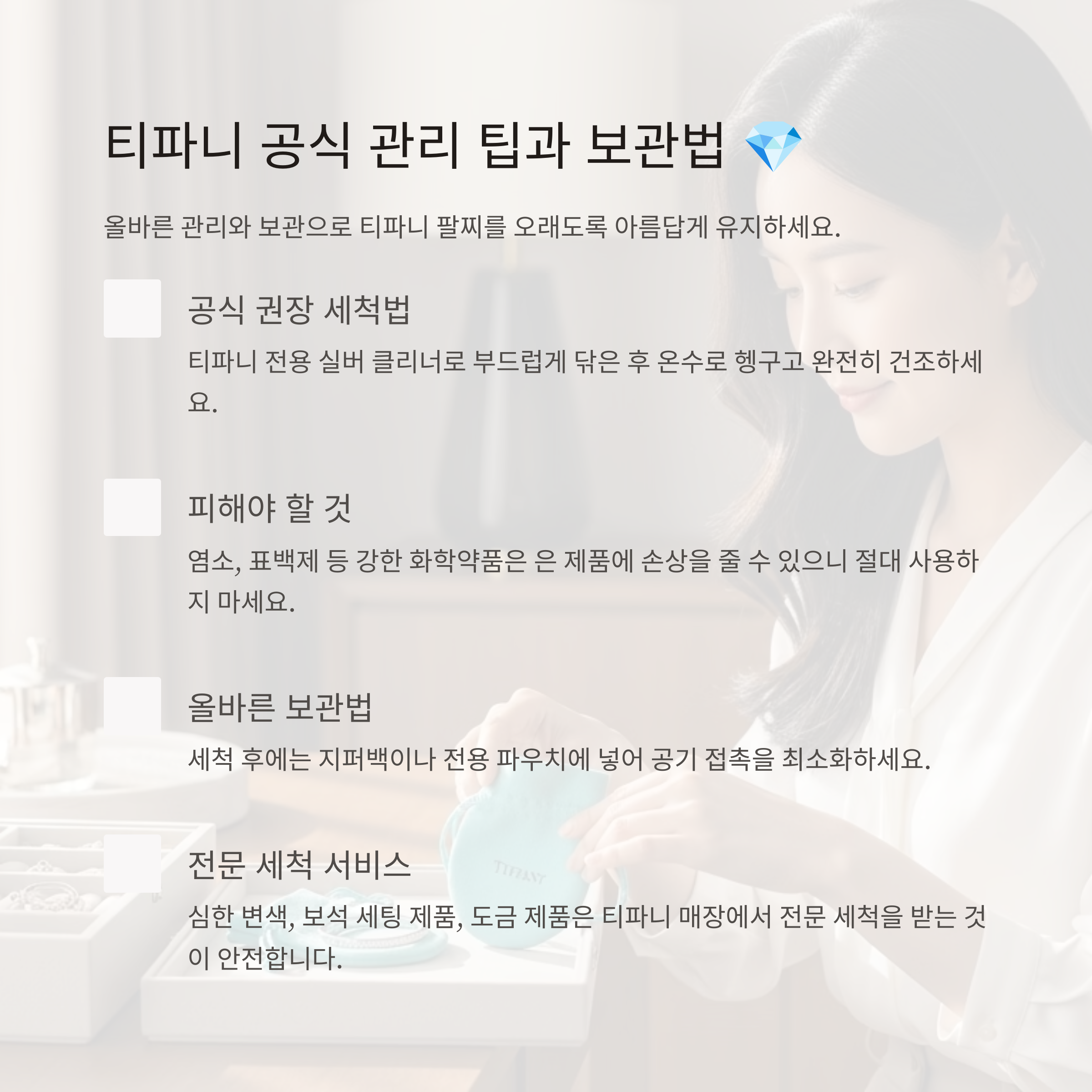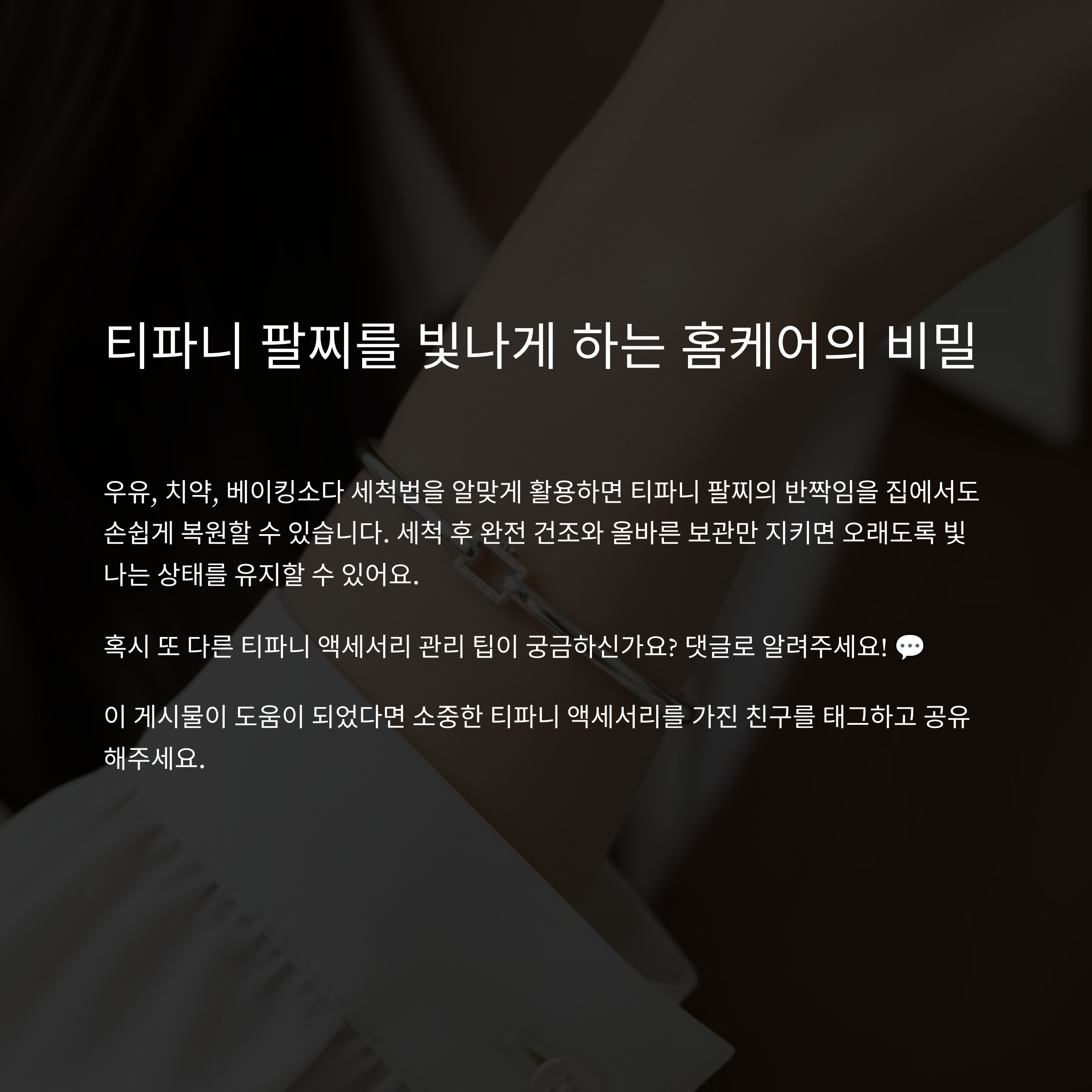 티파니 실버 팔찌는 시간이 지나면서 공기, 땀, 화장품에 의해 쉽게 변색됩니다. 하지만 집에 있는 간단한 재료만으로도 광택을 되찾을 수 있습니다. 오늘은 우유, 치약, 베이킹소다를 활용해 안전하게 세척하는 법과 주의사항을 알려드립니다. 집에서도 전문가처럼 관리해 보세요.
