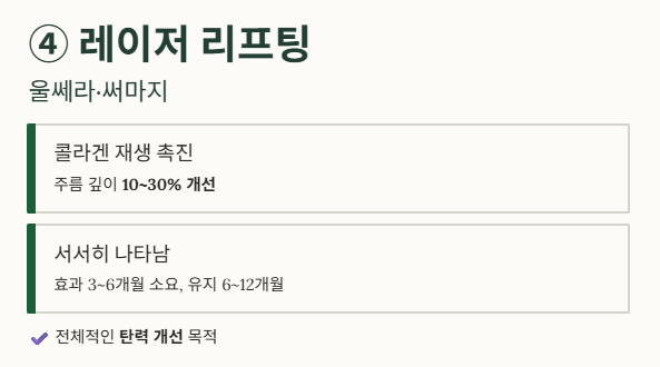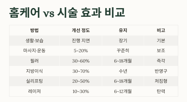 ✔ 초기엔 생활 관리, 중기엔 필러·리프팅 병행
