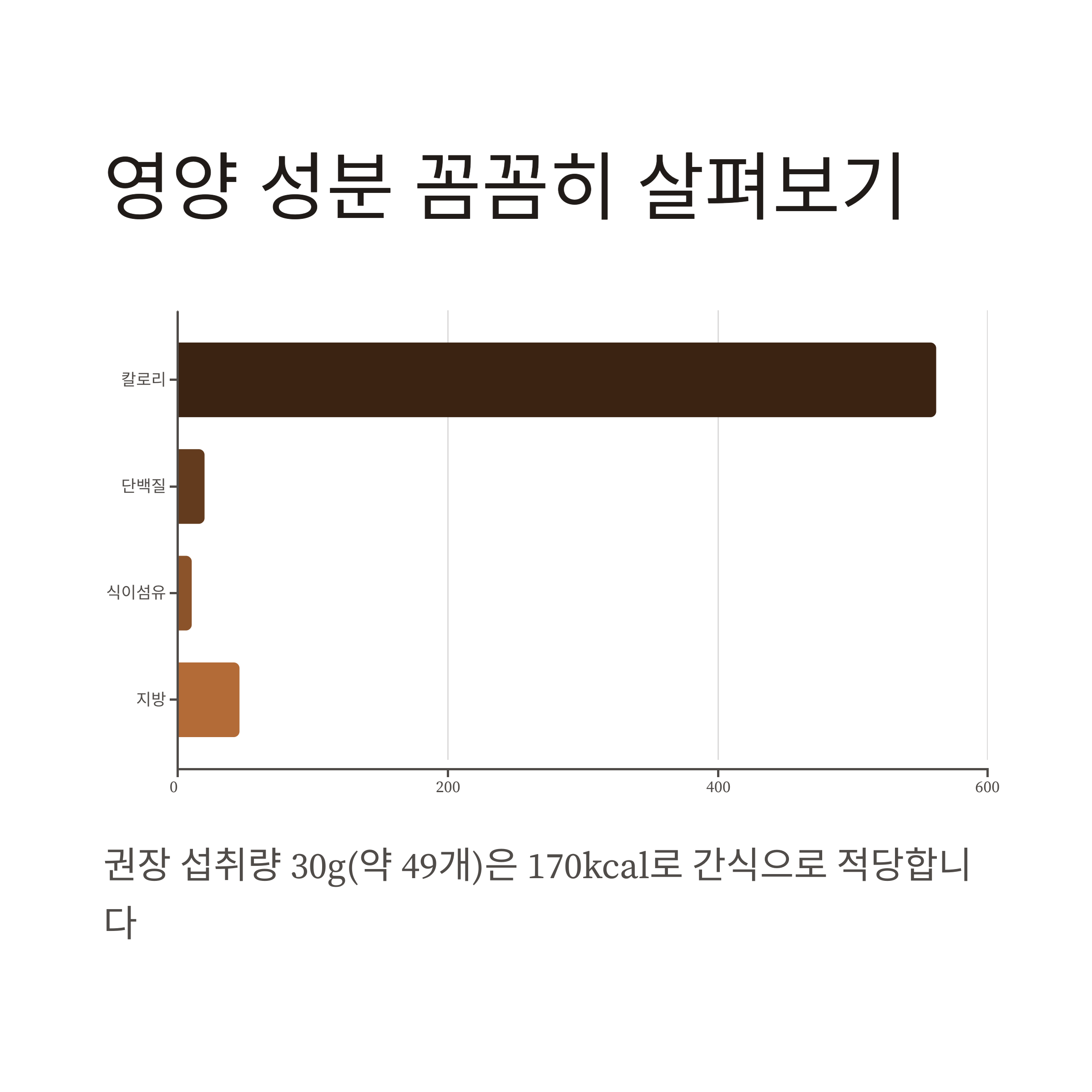 1회 권장 섭취량인 약 30g(49개 내외) 기준으로는