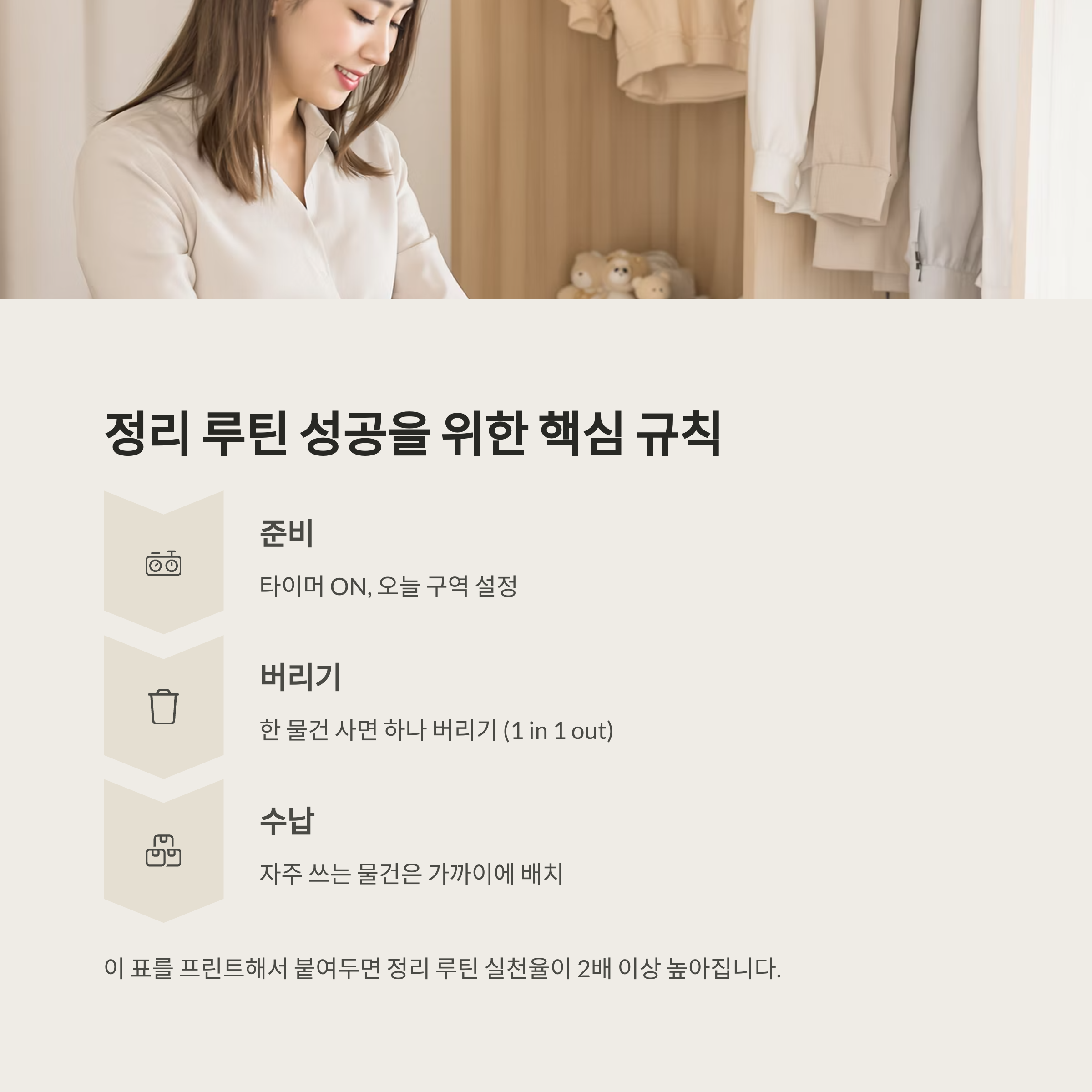 정리 루틴의 지속 가능성을 높여주는 자기 암시가 됩니다