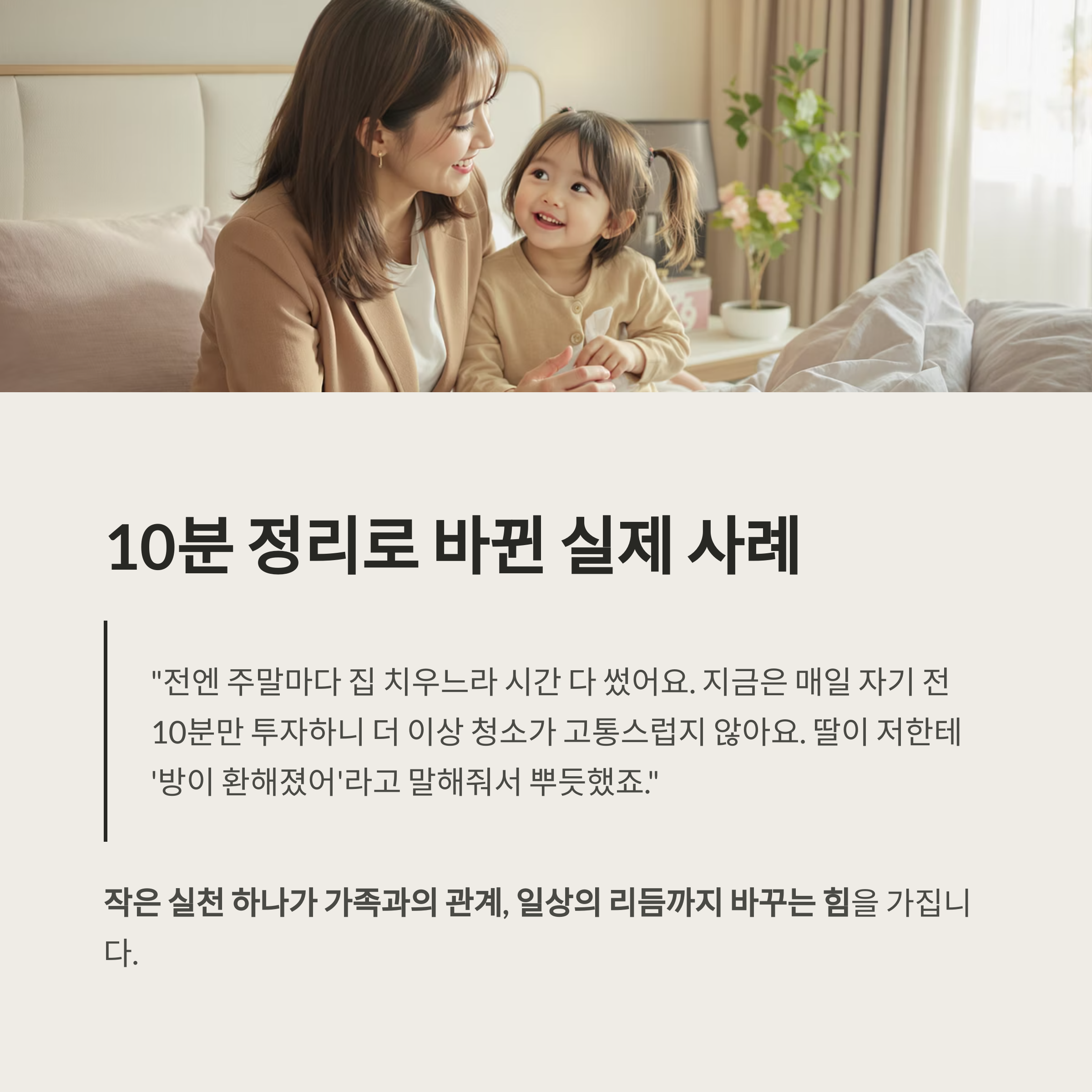 하루 10분만 투자해도 공간은 분명히 달라지고, 생활의 질이 눈에 띄게 개선됩니다