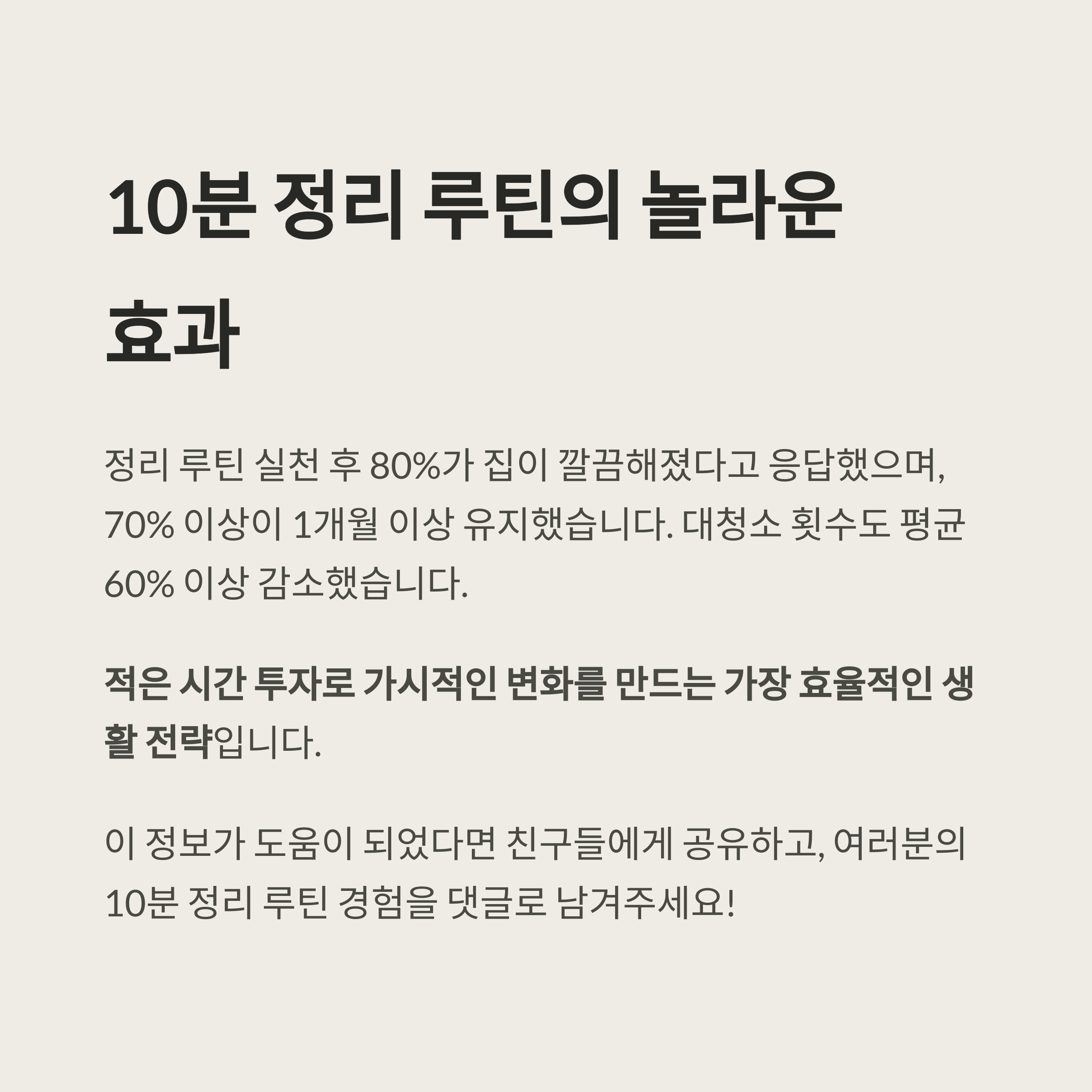 하루 10분만 투자해도 공간은 분명히 달라지고, 생활의 질이 눈에 띄게 개선됩니다