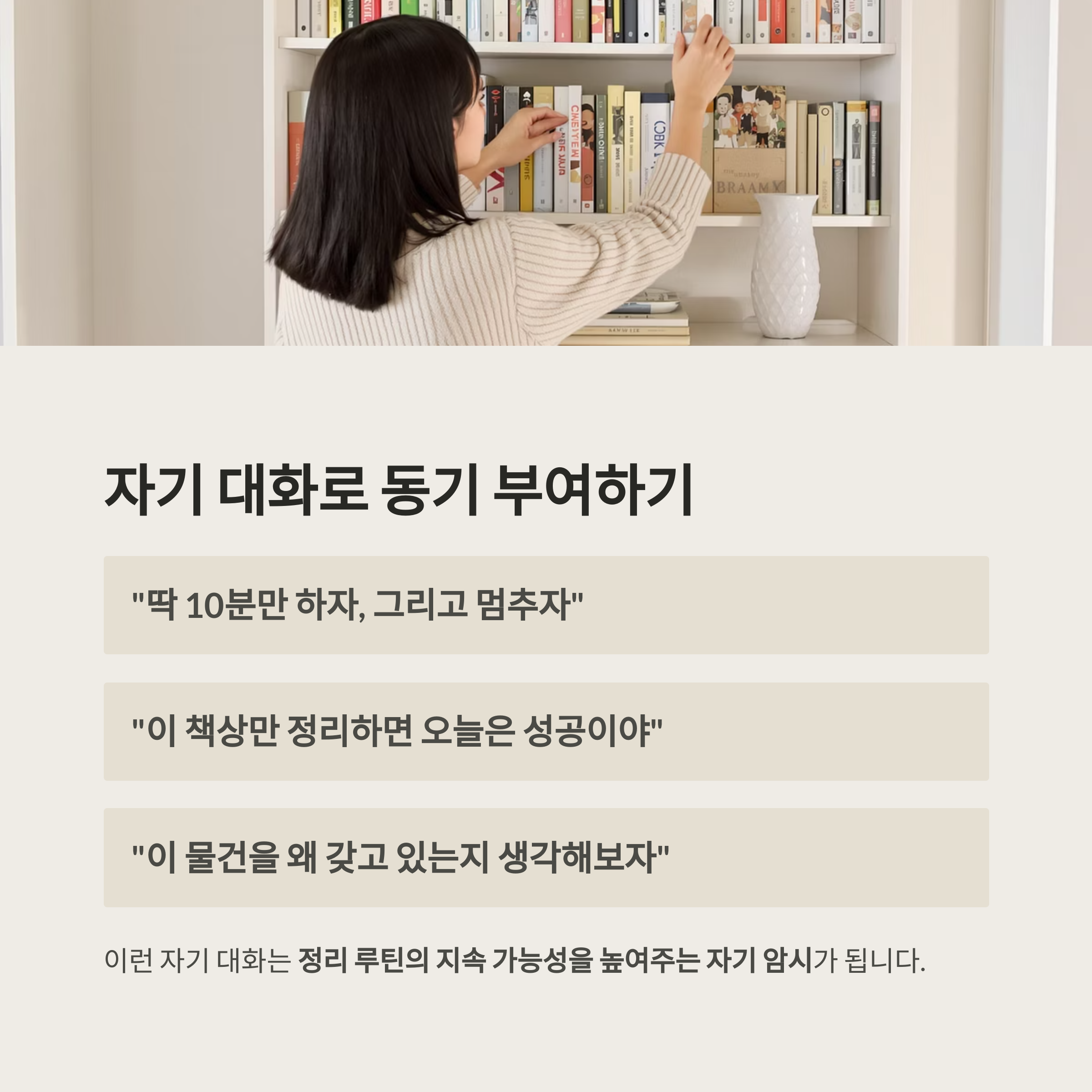 정리 루틴의 지속 가능성을 높여주는 자기 암시가 됩니다
