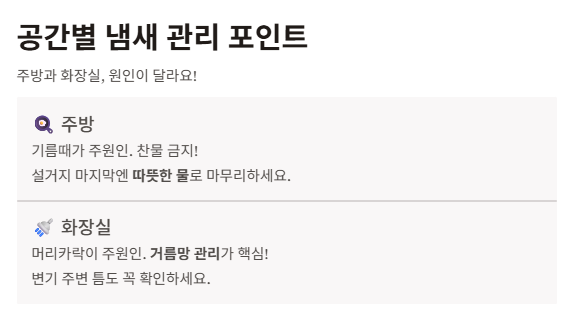 공간에 따라 냄새 원인도 조금씩 달라요.