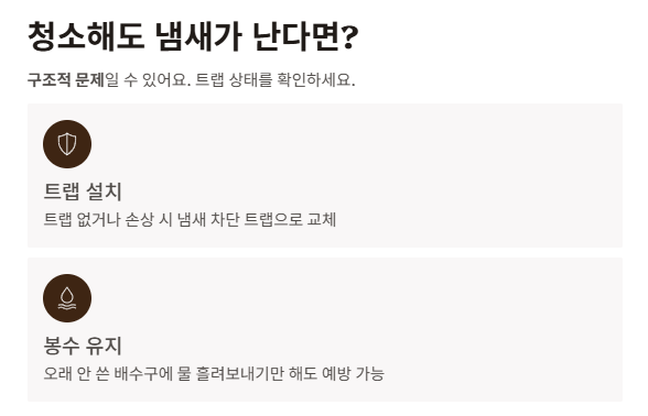 청소를 했는데도 냄새가 계속 난다면 구조 문제일 가능성이 높아요.
