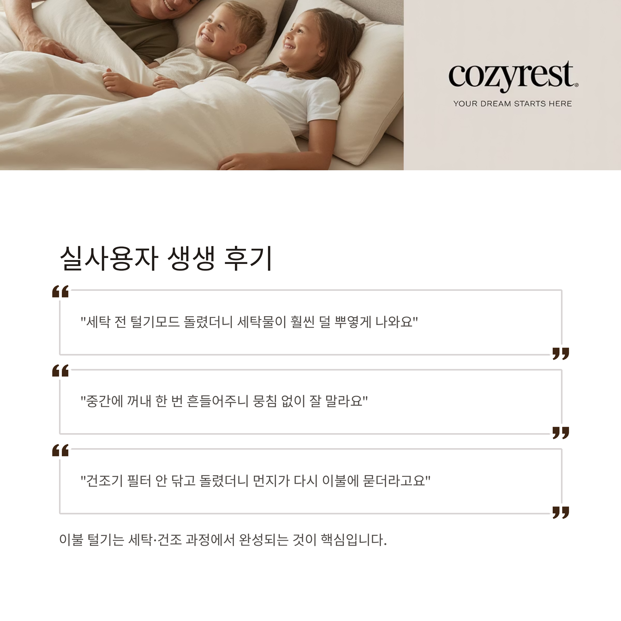 - “건조기 필터 안 닦고 돌렸더니 먼지가 다시 이불에 묻더라고요.”