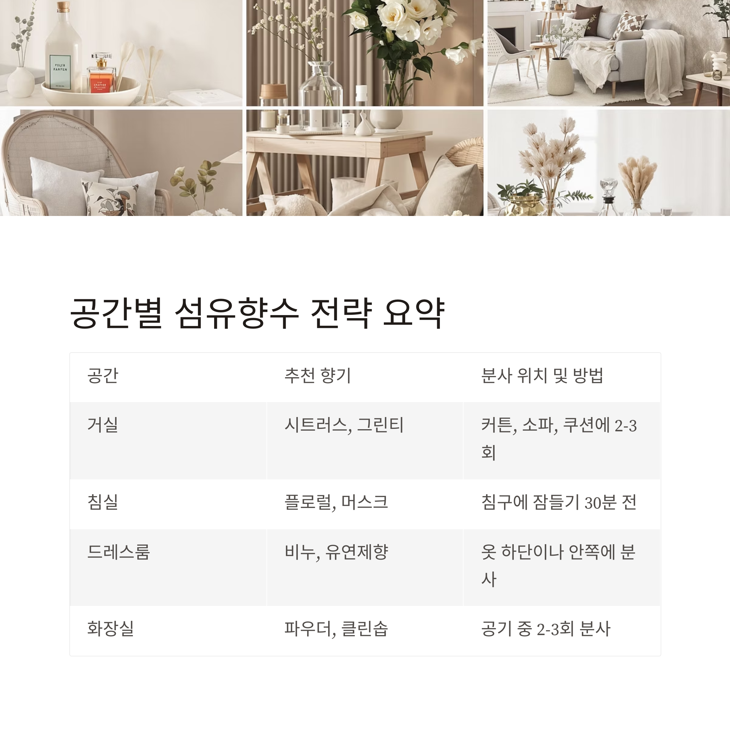 공간별 섬유향수 전략 요약표