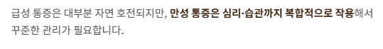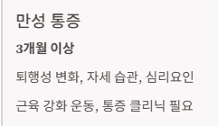 만성 3개월 이상 퇴행성 변화, 자세 습관, 심리요인 근육 강화 운동, 통증 클리닉 필요