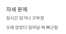 자세 문제 장시간 앉거나 구부정 오래 앉았다 일어날 때 뻐근함
