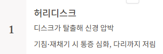 | 허리디스크 | 디스크가 탈출해 신경 압박 | 기침·재채기 시 통증 심화, 다리까지 저림 |