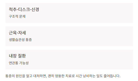 통증의 원인을 알고 대처하면, 괜히 엉뚱한 치료로 시간 낭비하는 일도 줄어듭니다.