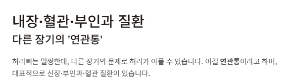 이걸 연관통이라고 하며, 대표적으로 신장·부인과·혈관 질환이 있습니다.