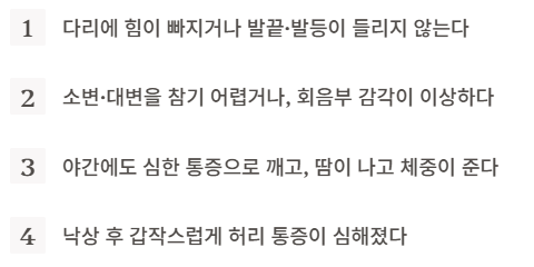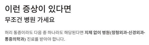 허리 통증이라도 다음 중 하나라도 해당된다면