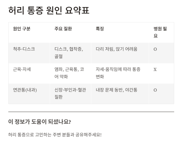 2025년 기준 의학 보고에 따르면, 허리 통증은 척추·디스크·신경 문제 외에도 근육·자세, 내장 질환 등에서 비롯될 수 있어요.