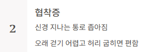 척추·디스크 디스크, 협착증, 골절 다리 저림, 앉기 어려움 O