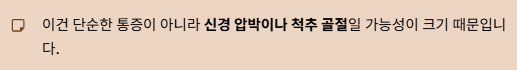 이건 단순한 통증이 아니라 신경 압박이나 척추 골절일 가능성이 크기 때문입니다.