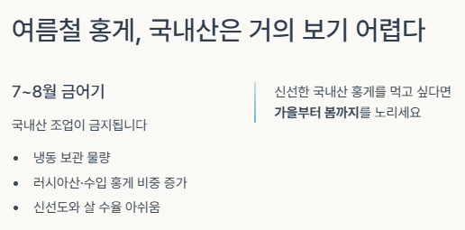 | 7~8월 | 금어기 – 국내산 유통 거의 없음 |