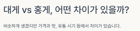 | 맛 | 살이 부드럽고 촉촉 | 쫀득하고 단맛 강함 |