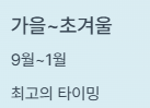 또는 봄철(3~5월 초)이 최고의 타이밍입니다.
