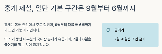 | 7~8월 | 금어기 – 국내산 유통 거의 없음 |