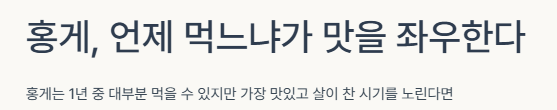 | 9~1월 | 바닷물 온도 하락으로 살이 찰지고 풍미가 최고조 |