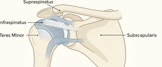 회전근개는 어깨를 감싸며 회전·들어 올리는 기능을 하는 4개의 힘줄입니다.