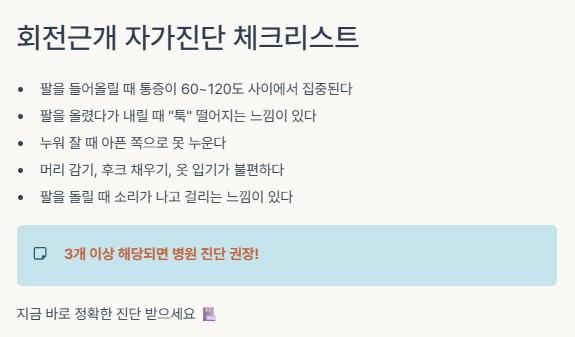 회전근개 자가진단 체크리스트