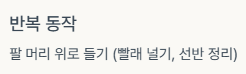 - 팔 머리 위로 반복 들기 (빨래 널기, 선반 정리)