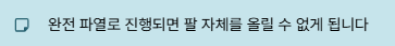 | 팔 올리기 | 가능하나 힘 빠짐 | 자체적으로 올리지 못함 |