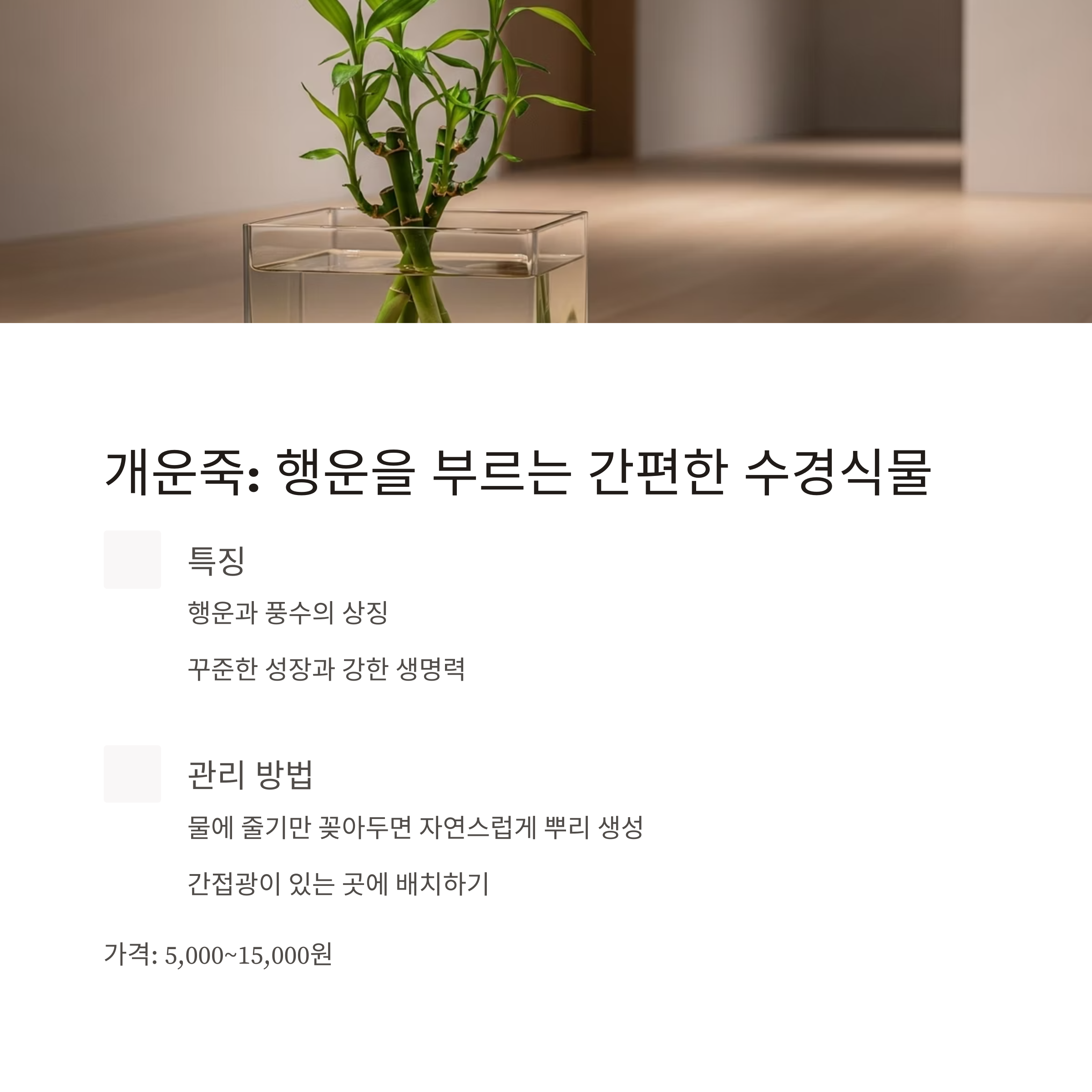 개운죽 행운 상징, 오래 자람, 관리 간편 매우 쉬움 5,000~15,000