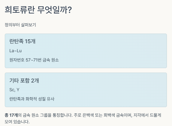 희토류는 총 17개의 금속 원소 그룹을 통칭합니다.