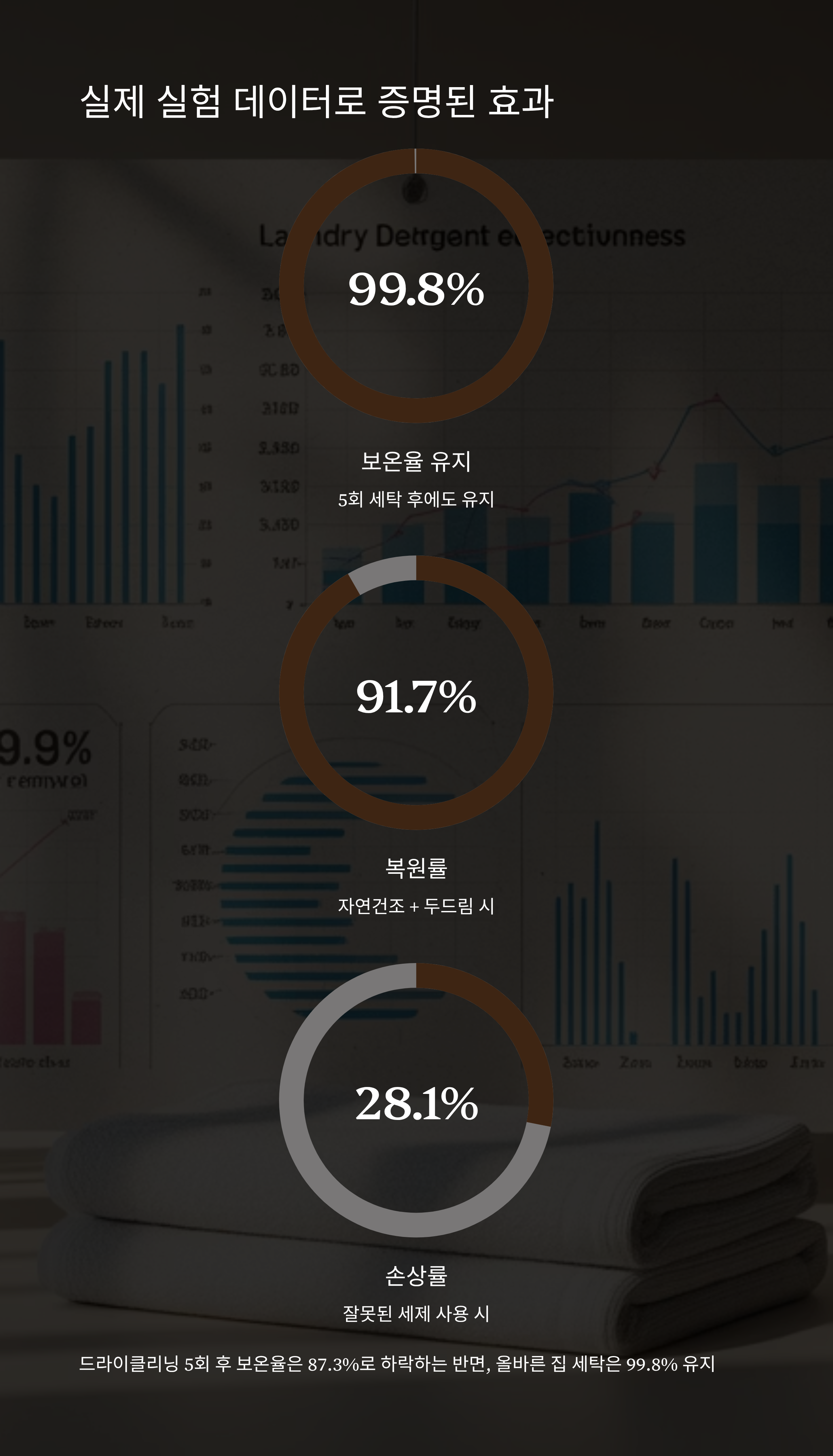 드라이클리닝 5회 후 보온율 87.3%로 하락